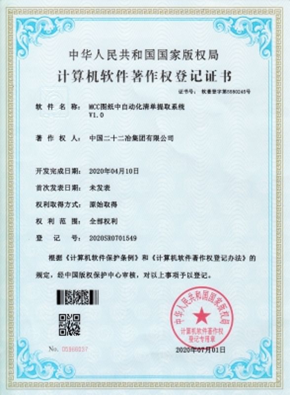 7月9日獲悉,中國二十二冶集團編制的《MCC圖紙中自動化清單提取系統V1.0》獲得中華人民共和國國家版權局計算機軟件著作權登記證書。
