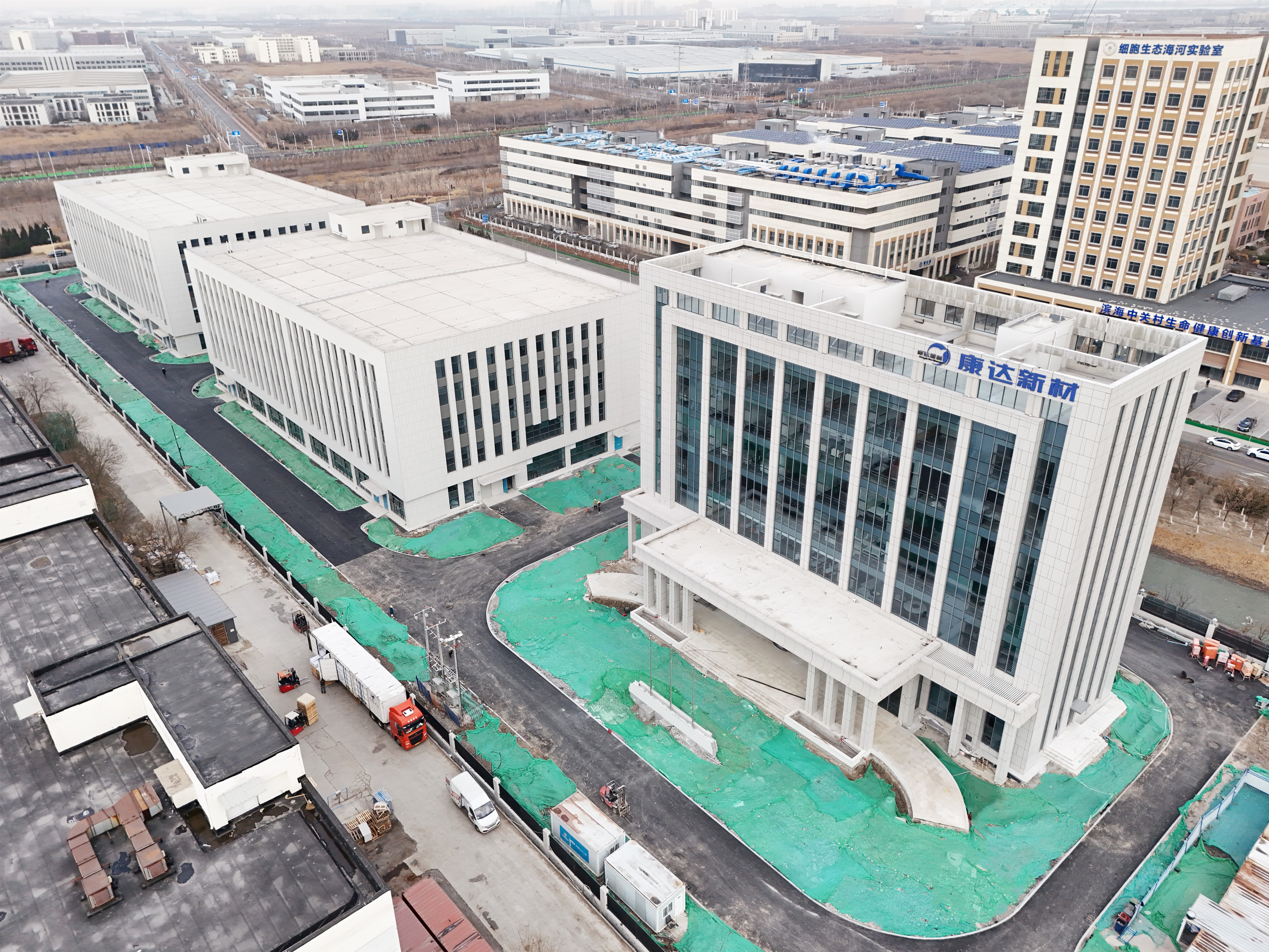 康達新材項目位于天津市濱海新區高新技術開發區,總建筑面積29049.55平方米,主要建設1棟辦公樓、2棟生產車間、1棟設備用房等設施。康達北方研發中心的建立,將有助于引進高素質研發人員,強化新材料研發團隊建設,推動新材料研究成果的市場轉化,提高公司競爭力。項目精心打磨施工方案,嚴格落實計劃要求,壓緊壓實任務目標,集中優勢資源,強化溝通協調,以快推進、強管理加速推動項目優質履約。