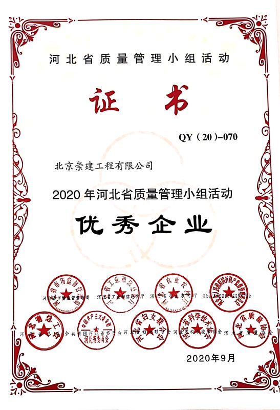 11月2日獲悉,在2020年河北省工程建設質量管理小組競賽活動中,北京崇建公司獲得“2020年度河北省質量管理小組活動優秀企業”稱號,公司總工程師梁曉波獲“2020年河北省質量管理小組活動卓越領導者”稱號,公司技術質量部部長徐小明獲“2020年河北省質量管理小組活動優秀推進者”稱號,公司完成的QC課題《提高鋁合金模板體系下二次結構混凝土一次成型合格率》獲“2020年河北省質量管理小組活動‘特等’成果”。