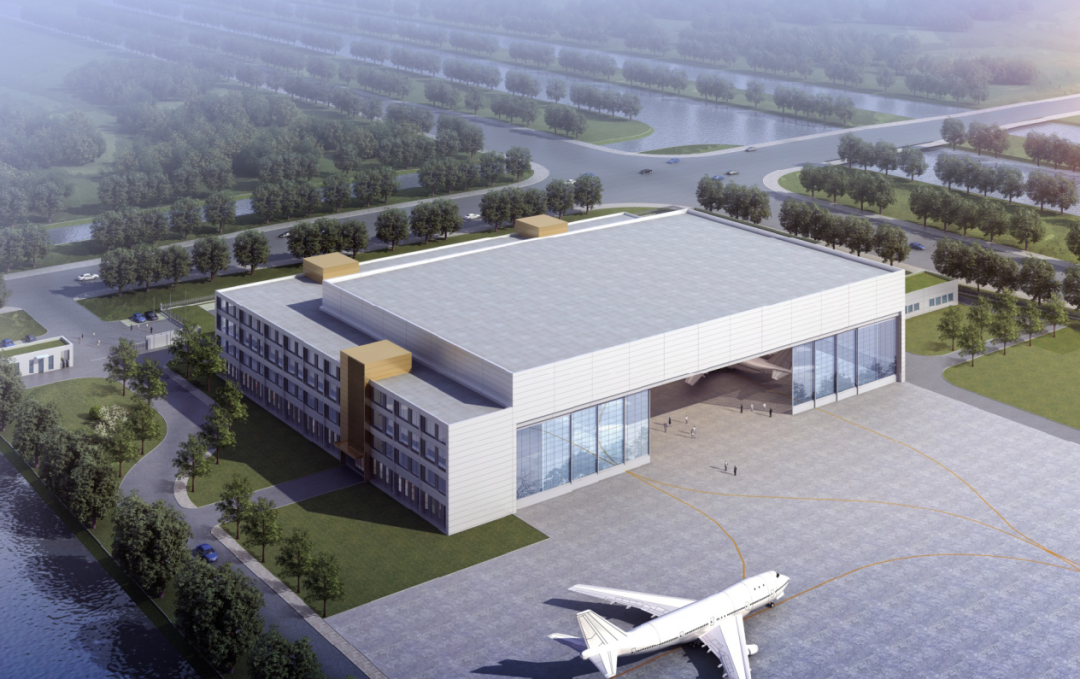 上海商飛交付維修項目地處上海市浦東新區自貿區保稅區域上飛路919號,基地總體規劃用地約267萬平方米,總建筑面積約113萬平方米,根據型號產品的發展要求分期建設實施。華東公司建設部分面積為25353平方米,最大跨度96米,主要建設內容包括新建完工機庫、附屬用房、動力中心、停機坪及綠化等。