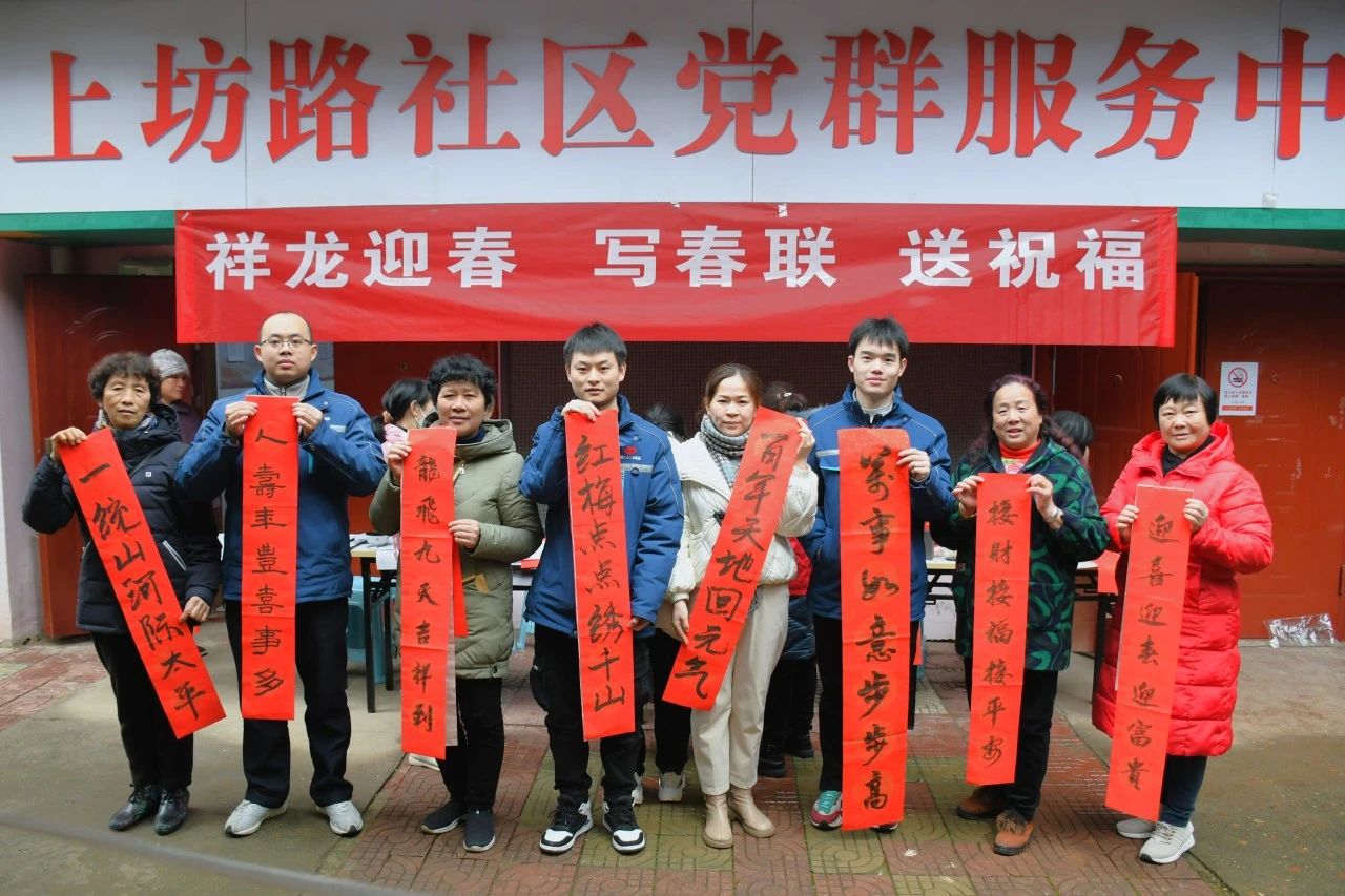 為深入學習貫徹習近平文化思想,進一步深化黨建聯建工作,1月30日上午,江西公司聯合上坊路社區開展“祥龍迎春 寫春聯 送祝?!被顒?。