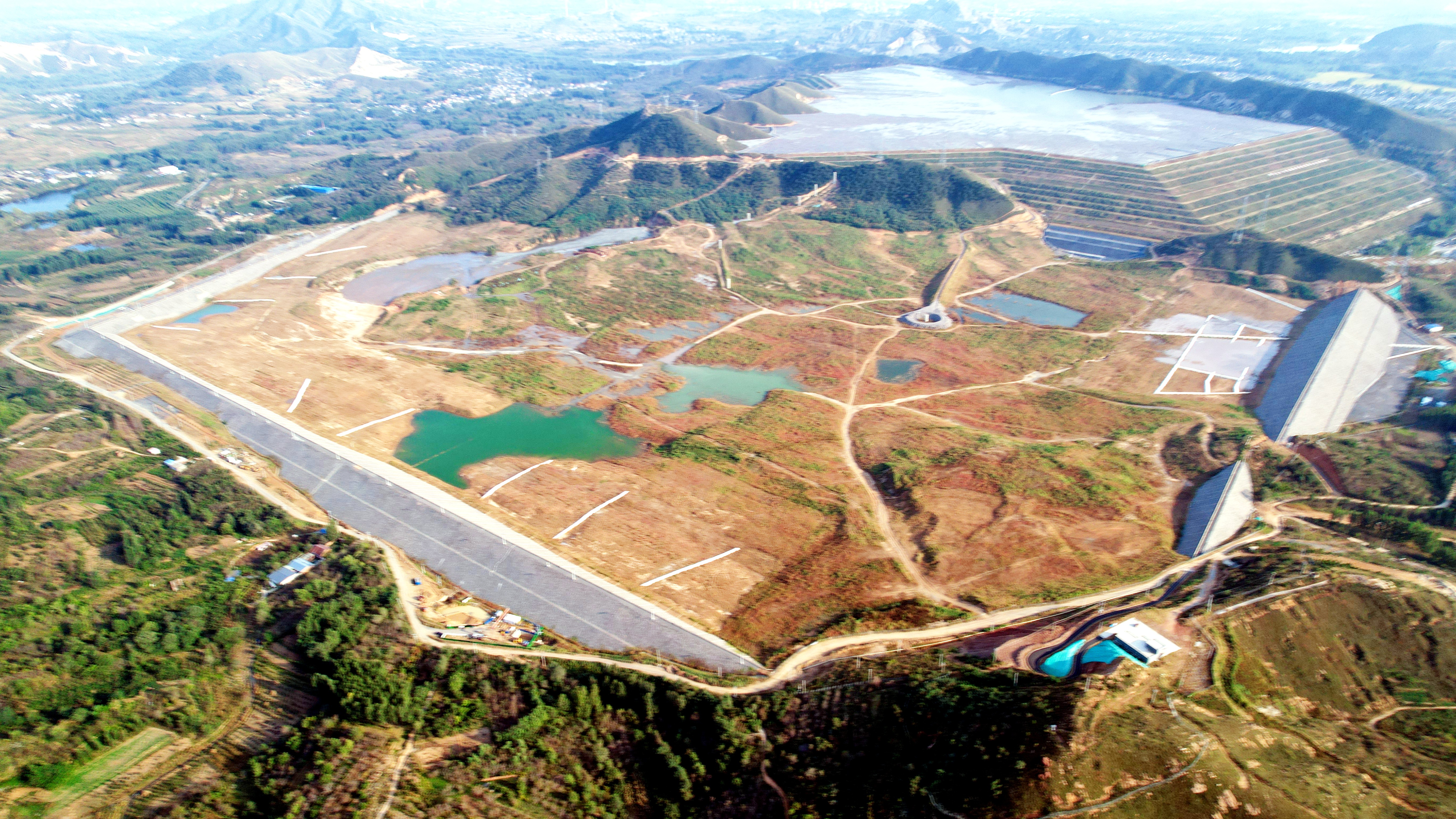 項目自啟動以來,面對地形復雜、施工時間長等挑戰,項目團隊采用“倒排工期、日匯報、周調度”管理機制,施工現場實行24小時不間斷作業,管理人員全程跟班監督。在技術應用上,首次引入智能稱重系統控制石料用量,大大提高工作效率。運用無人機進行施工監測,并采用廢石進占法筑壩工藝,既提升了壩體穩定性,又實現了廢石資源的循環利用,有效降低了施工成本。采用碾壓堆石壩結構,壩頂標高提升至68米,配套建設了庫區道路、排洪系統、尾礦輸送及回水系統等全鏈條設施。