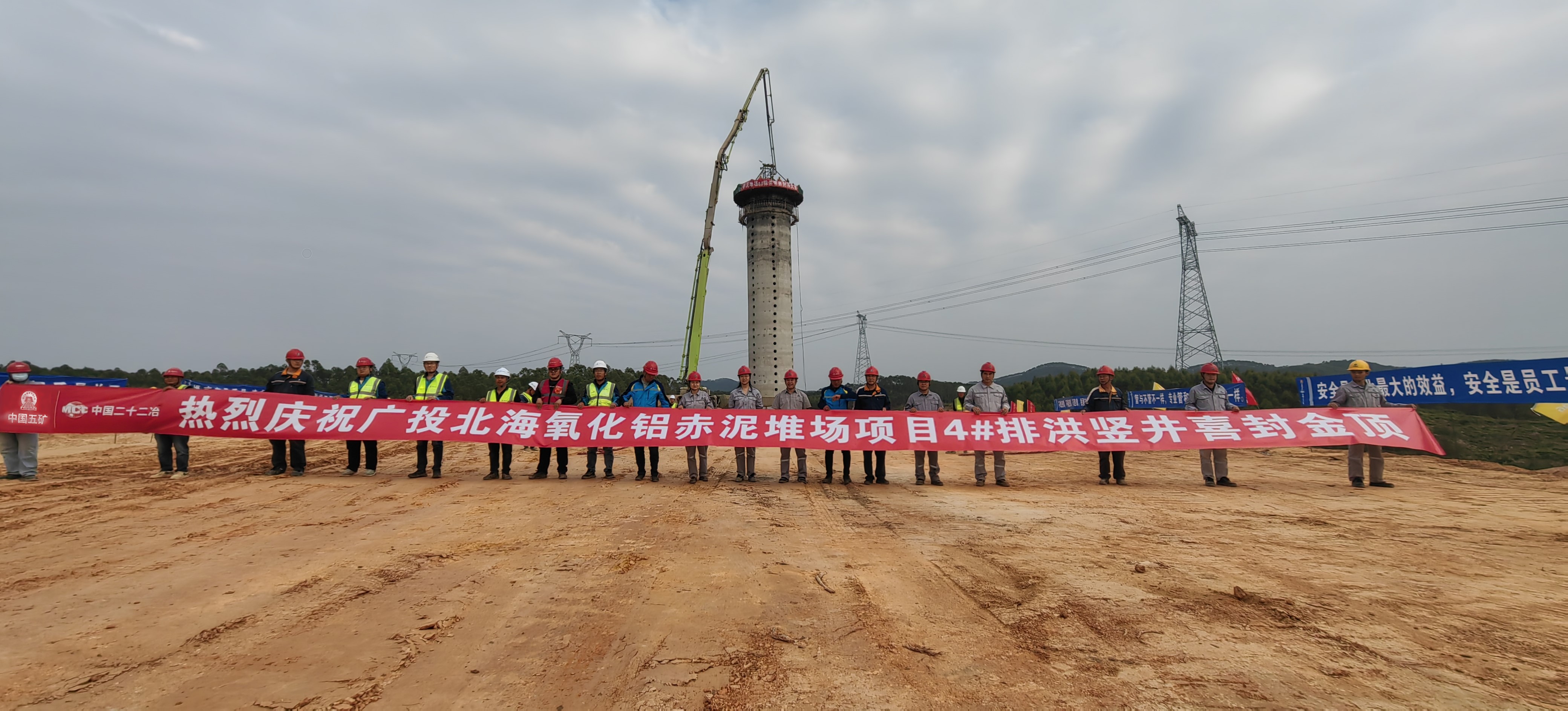 12月13日,冶金公司廣西廣投北海項目完成赤泥堆場4號排洪豎井封頂。