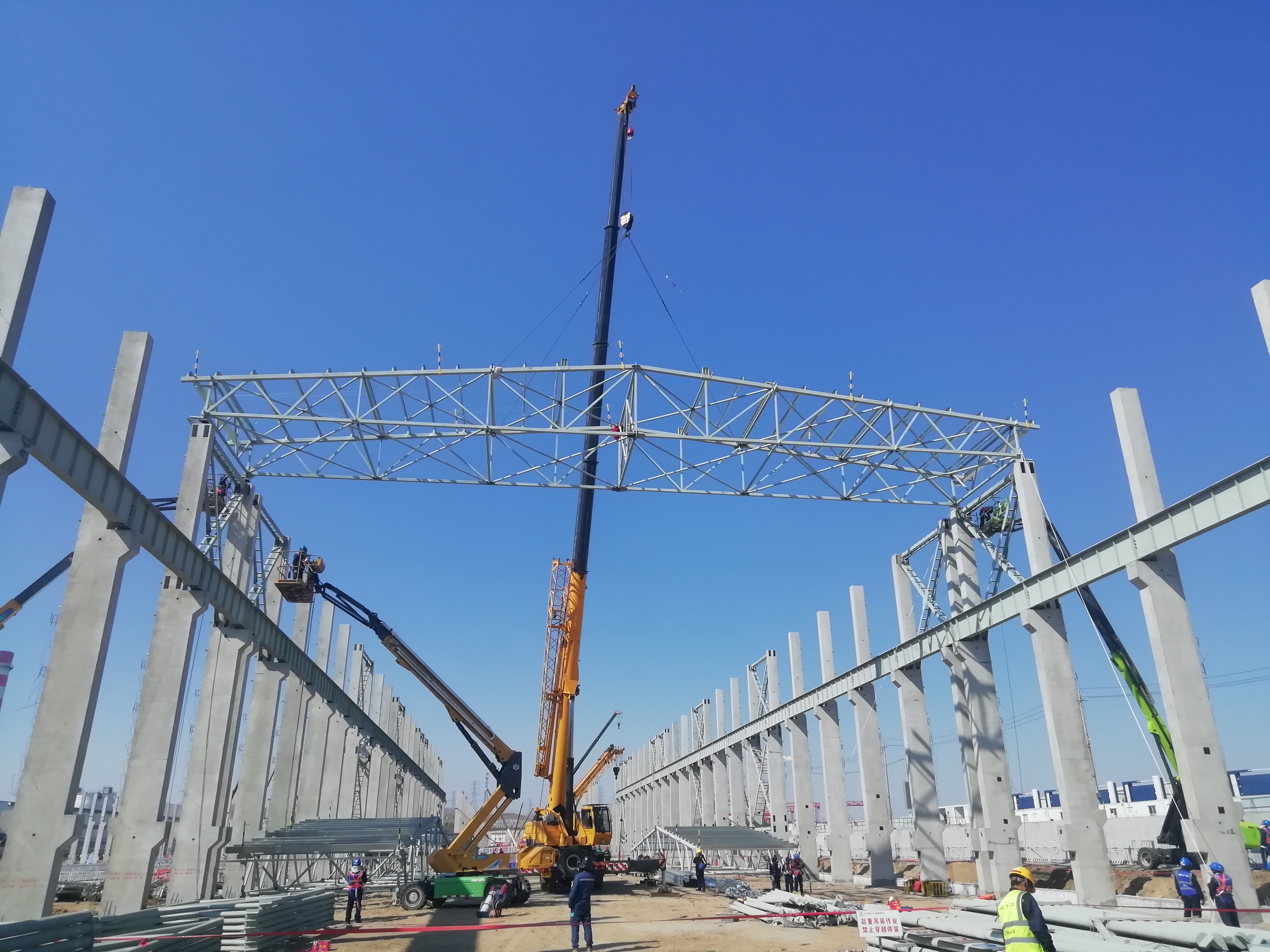 5月3日,冶金公司扎鋁二期項目完成第一跨鋼屋架安裝作業,標志著項目成功邁入結構安裝大干階段。