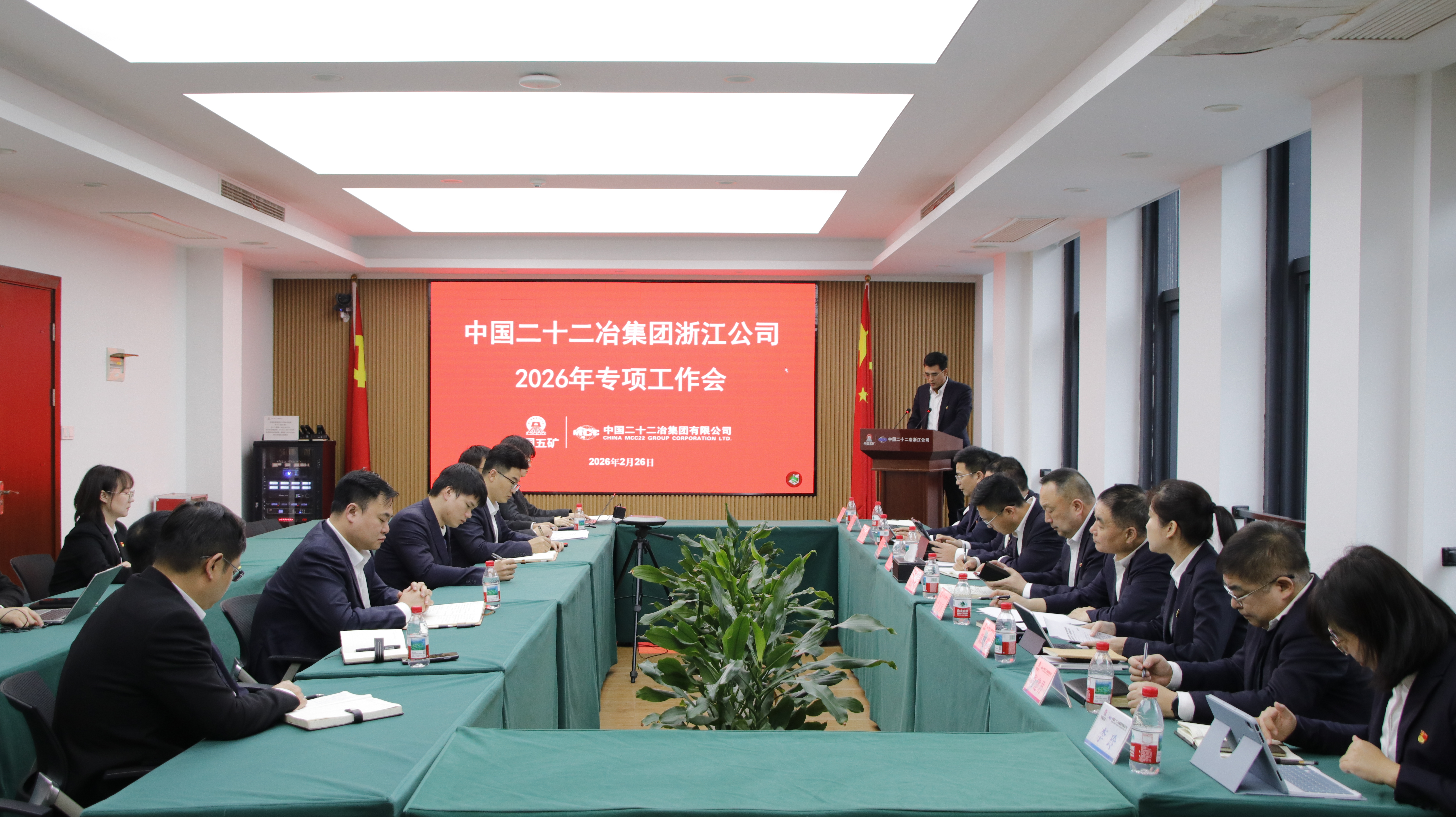 2月26日,浙江公司召開2026年專項工作會議。會上傳達了中國二十二冶2026年專項工作會議精神,部署2026年重點工作,進一步統一思想、凝聚共識,確保“兩步走、再轉型,提質增效啟新程”開好局、起好步。浙江公司副總經理(主持工作)、黨委副書記陳克甫,黨委書記、工會主席、副總經理田世英出席會議并講話,副總經理袁偉主持會議。