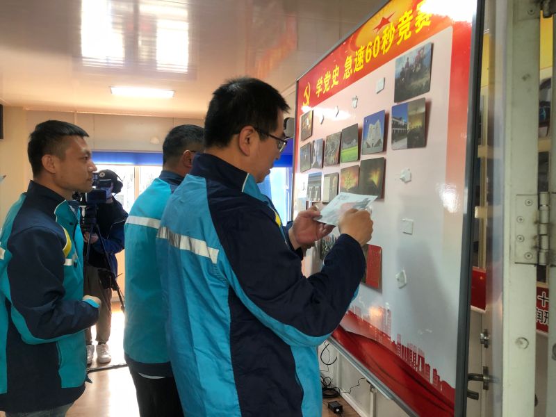 在學黨史環節,與會人員觀看了《中國共產黨百年述職報告》,共同感受建黨百年的苦難輝煌。之后,與會人員分3組開展黨史“急速60秒”競賽,憑借日常黨史學習的知識積累,在固定時間內完成黨史大事件的時間軸排序。參賽小組團結協作,充分調動知識儲備,廣大黨員在寓教于樂的活動中收獲知識,在中國共產黨百年歷程中汲取精神養分。