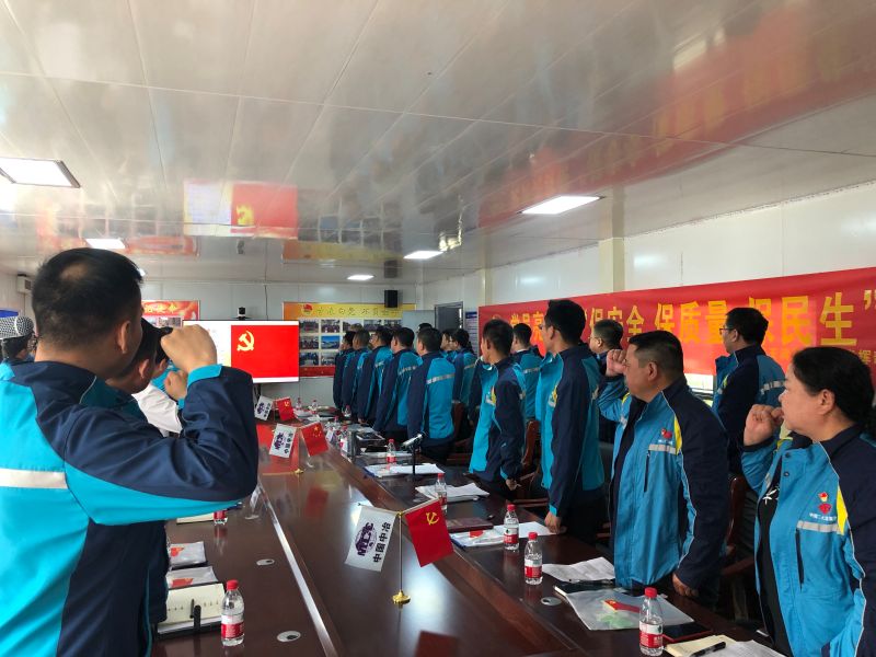 在悟思想環節,舉辦“談感悟、守初心、立目標”感悟分享會。中國二十二冶集團勞動模范姜義州講述了“西柏坡精神”黨史故事——《新中國從這里來》,與會黨員代表結合實際工作談了近期學黨史的收獲和感悟,并宣讀了個人制定的“黨員登高計劃”。之后,全體黨員面對黨旗,高舉右拳,重溫入黨誓詞,共憶入黨初心。